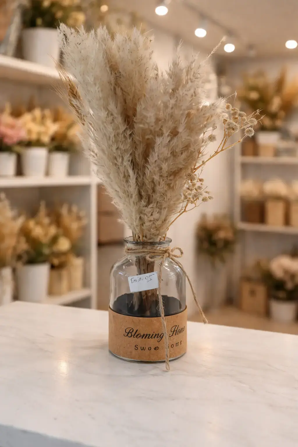 Ce bouquet de fleurs séchées décoratives avec vase en verre est l’accessoire idéal pour sublimer votre décoration intérieure. Composé de fleurs séchées naturelles aux tons doux et chaleureux, il apporte une ambiance élégante, bohème et moderne à votre maison.