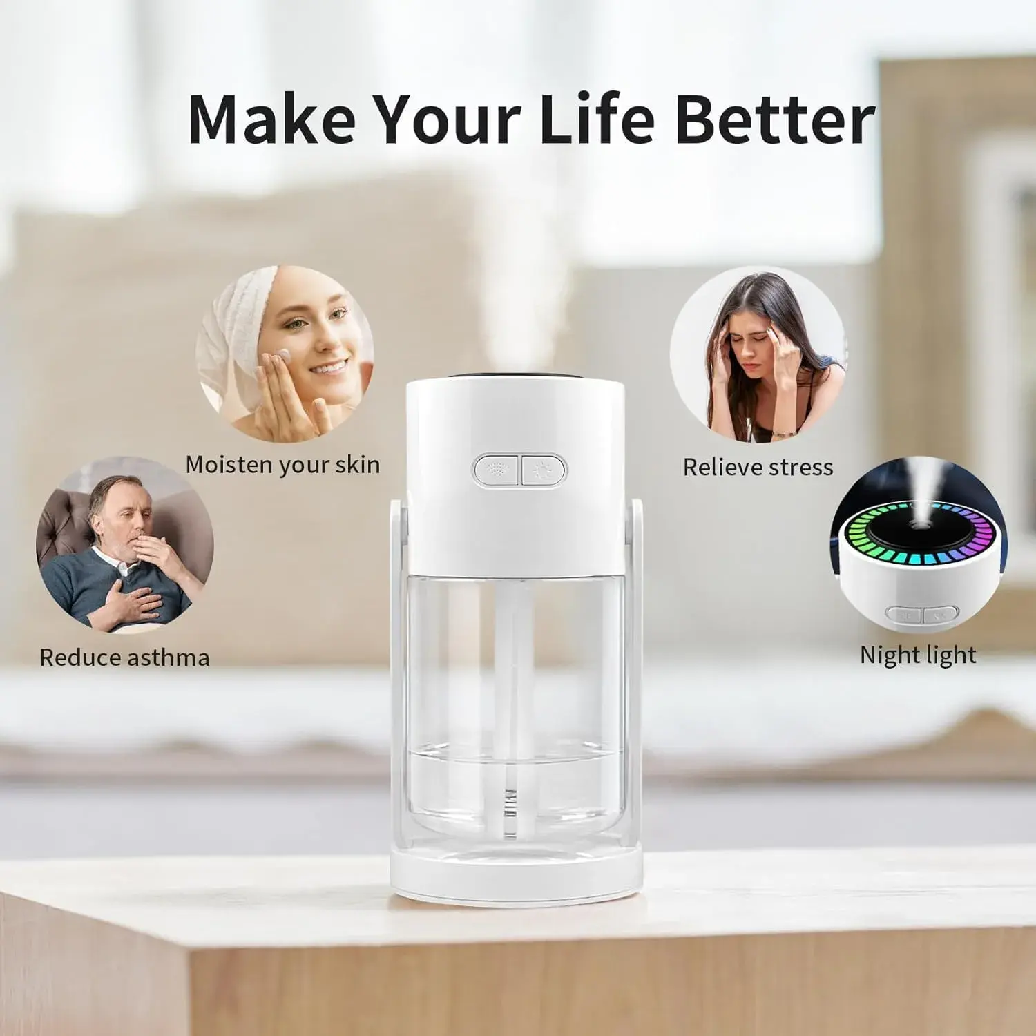 Son design élégant avec réservoir transparent permet de visualiser facilement le niveau d’eau, tandis que l’éclairage LED effet ciel étoilé crée une ambiance douce et relaxante. Compact et stable, il s’intègre facilement sur une table, une étagère ou un bureau.
