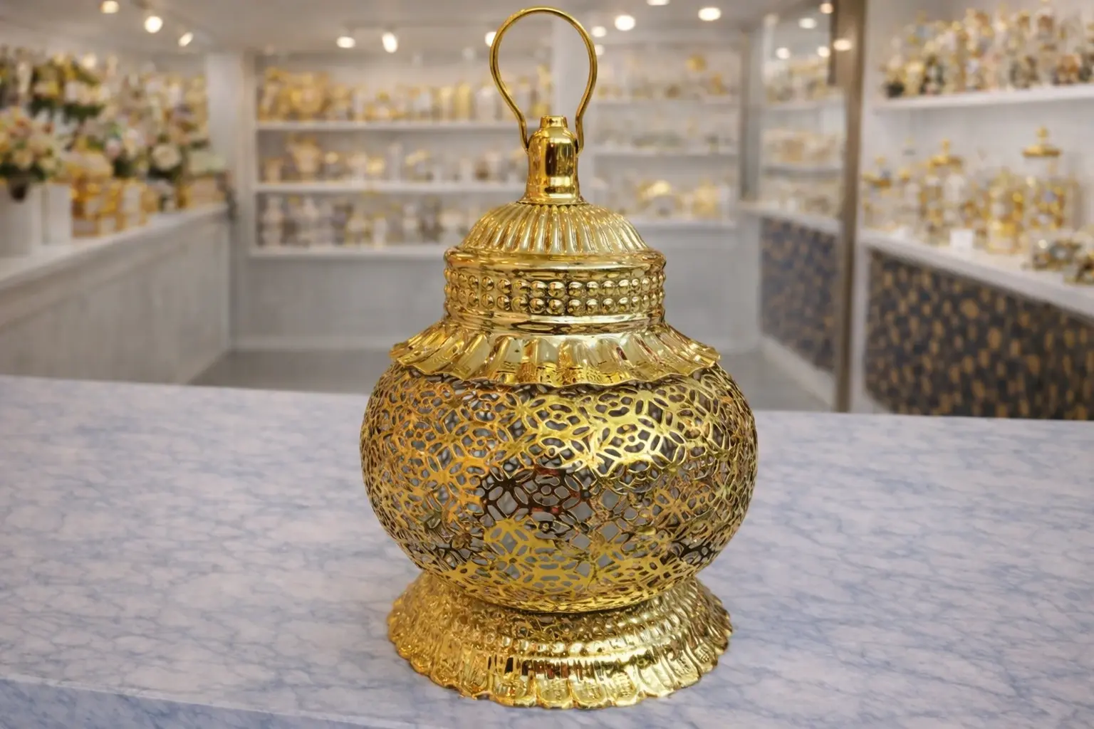 Lanterne décorative en métal doré