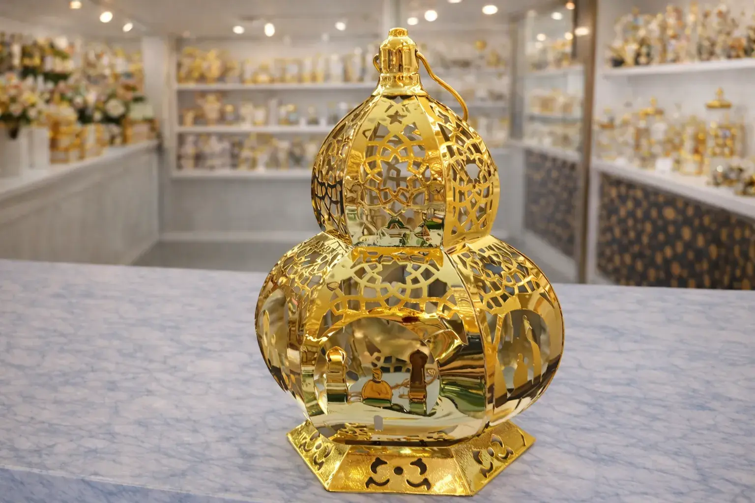 Lanterne décorative en métal doré