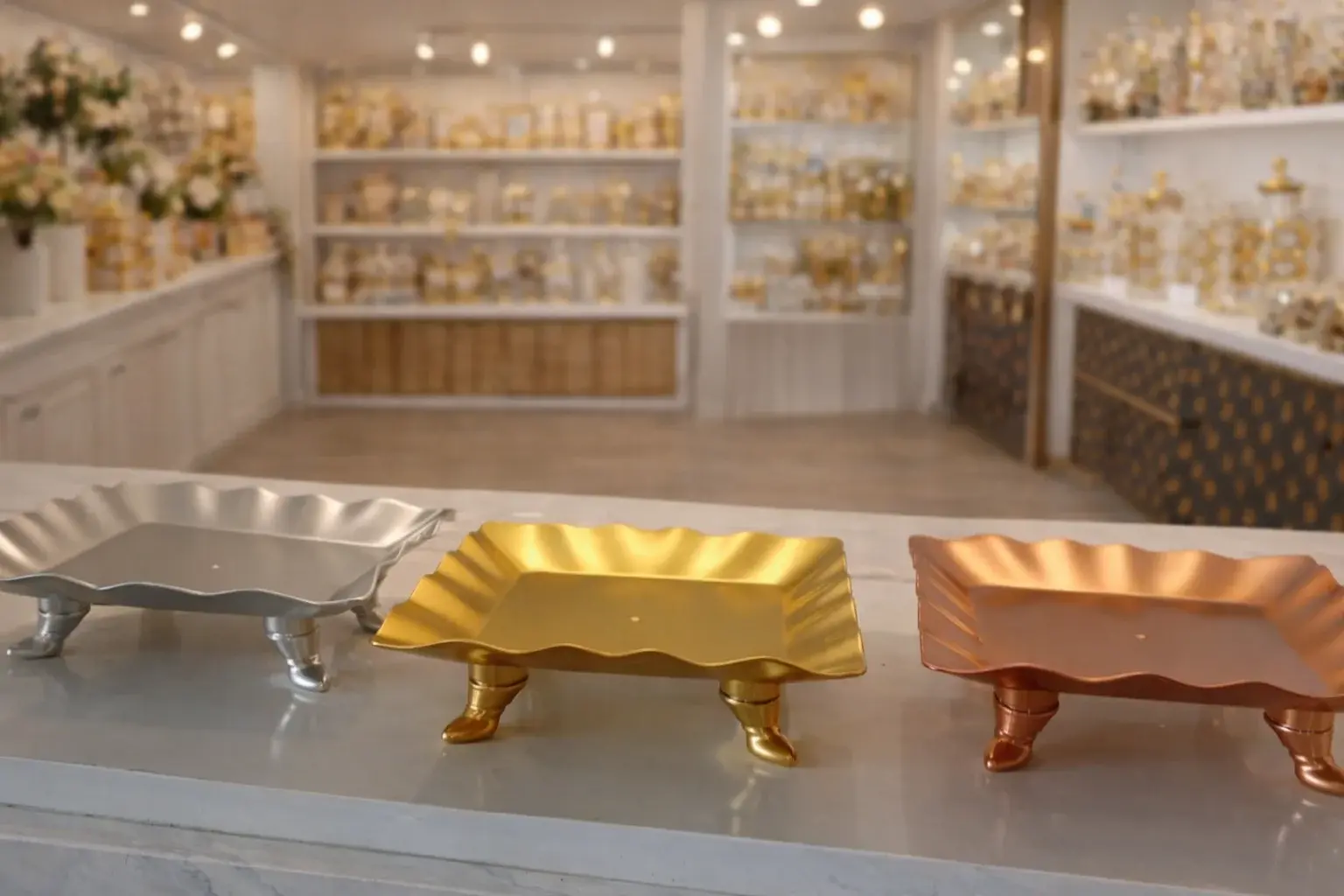 - Plateau de présentation carré en métal