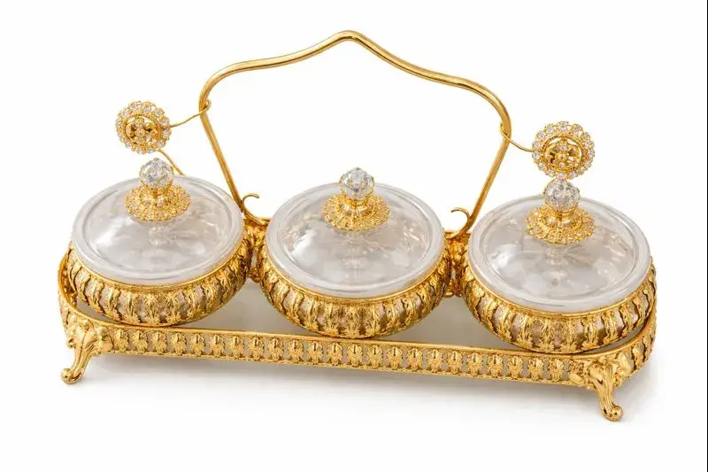 - Plateau décoratif avec structure dorée