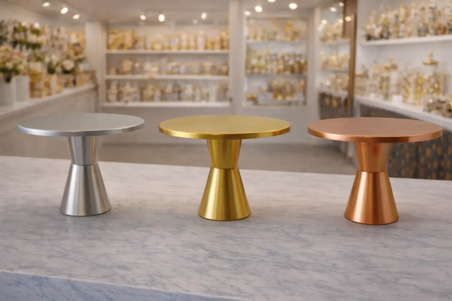 Présentoir rond en métal sur pied – Plateau décoratif élégant pour gâteaux et desserts