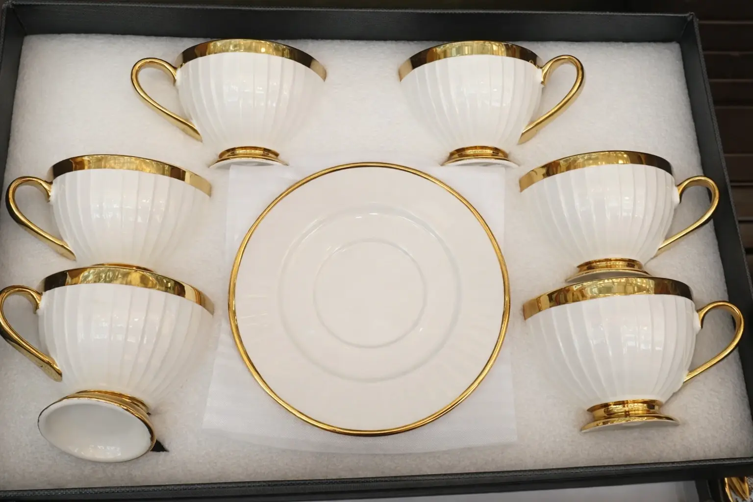 Service à café en porcelaine blanche et dorée