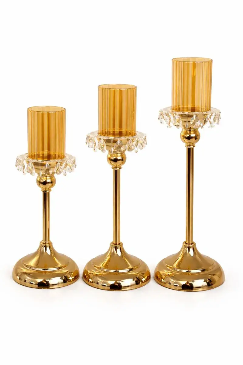 Set de 3 bougeoirs décoratifs en métal doré avec coupelle en verre