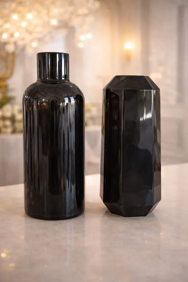Vases décoratifs en verre noir brillant – formes élégantes modernes